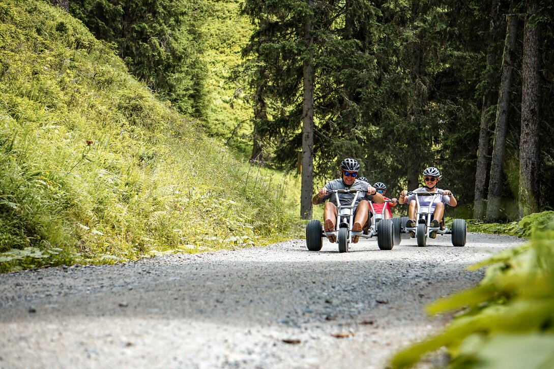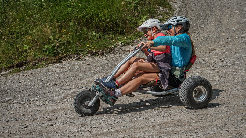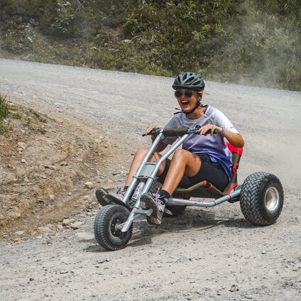 Three wheels guarantee three times the fun! With the mountain cart, you whizz from the Hochjoch cable car mountain station over 4.2 km towards the middle station. Great fun for the whole family, as children and adults alike can enjoy carting thanks to the different cart sizes. Be it as the crowning glory of a day's hiking, an adventurous excursion or a group event.