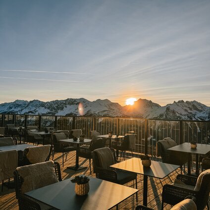 End your day of skiing in style, enjoy the sunset over the Montafon peaks and relax to the laid-back music of DJ acts and live saxophone.