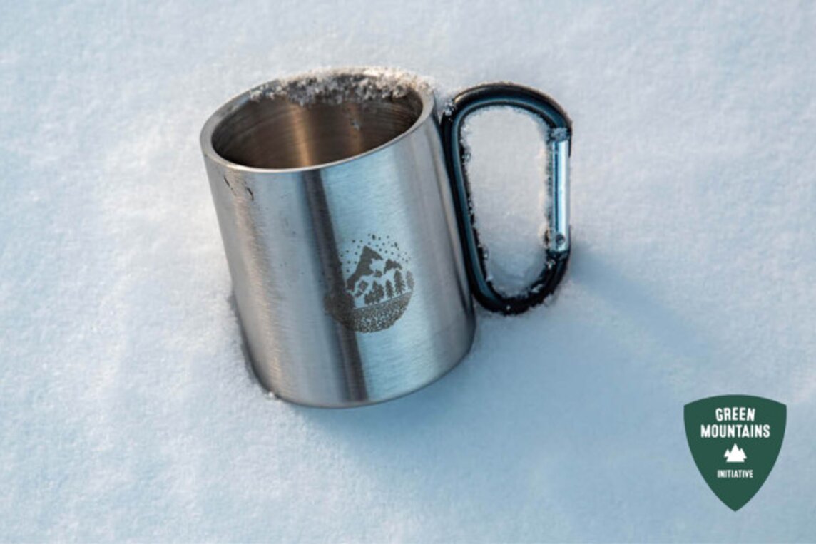 The high-quality stainless steel metal cup with a carabiner handle is your perfect companion for hot and cold drinks in the mountains.
